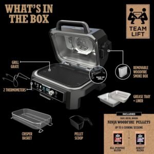 • NINJA WOODFIRE TECHNOLOGY: Powered by electricity, flavored by real wood burning pellets for all the flavor and none of the flame. Add smoky flavor you can see and taste.