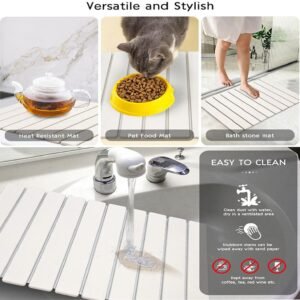 - 【Superior Quick-Dry Stone Mat】This kitchen countertop dish drying mat boasts exceptional water absorption. quickly soaking up moisture in minutes to keep your countertop dry and clean. Say goodbye to dampness and keep your kitchen surfaces spotless at all times.